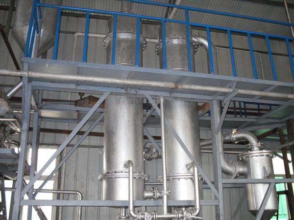 將反應(yīng)好的粗甲酯經(jīng)預(yù)熱器打入蒸餾系統(tǒng),本蒸餾系統(tǒng)采用三次蒸餾工藝,大大提高了油品質(zhì)量和得率,成品油的提取完全在高真空密閉系統(tǒng)中進行,本系統(tǒng)設(shè)備全部為不銹鋼304材質(zhì),所以在高溫下不會氧化,使產(chǎn)品的顏色得到最佳。